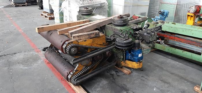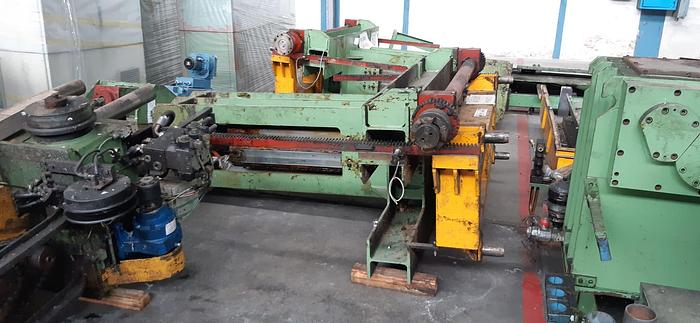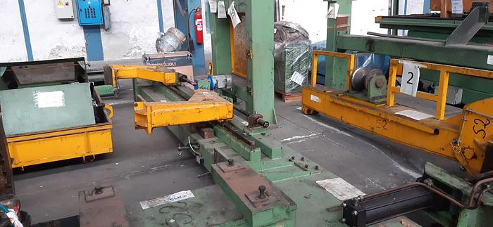 DESBOBINADORA VOLADIZA con tercer apoyo, abridor de bobinas y mesa de enhebrado; freno eléctrico; giro horario